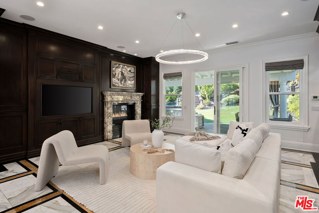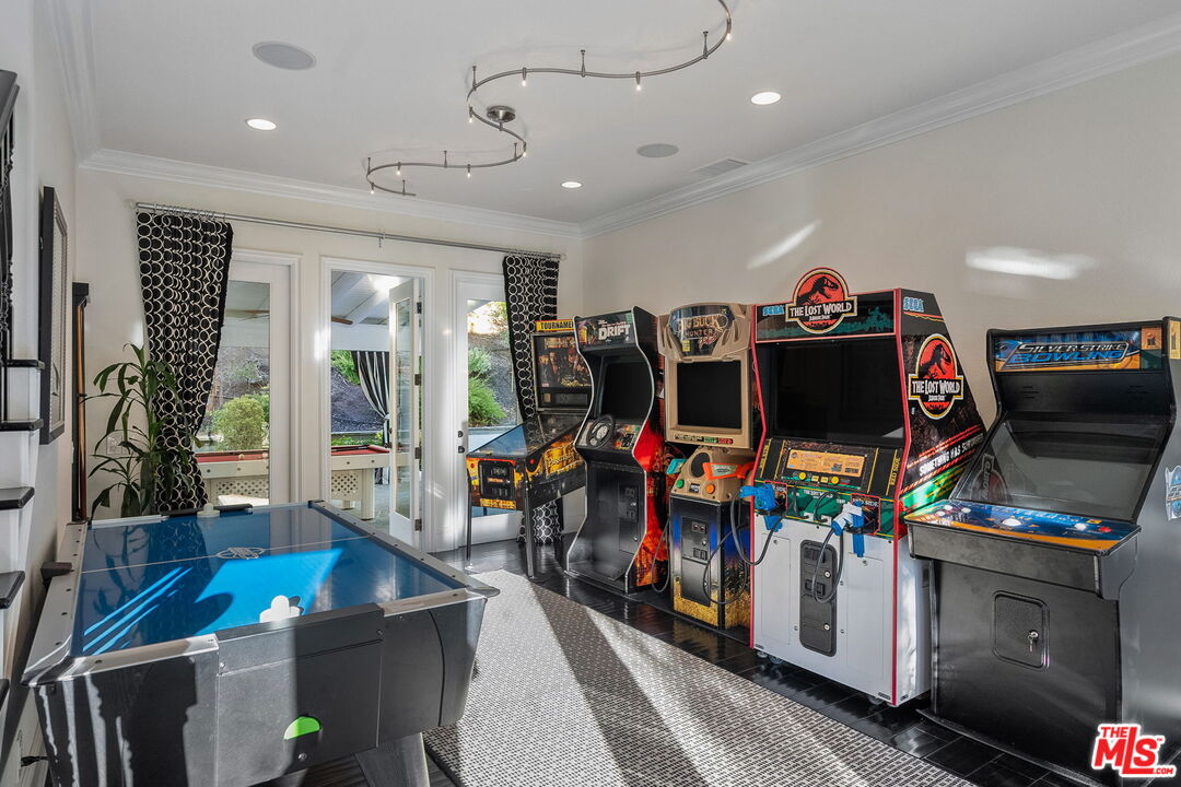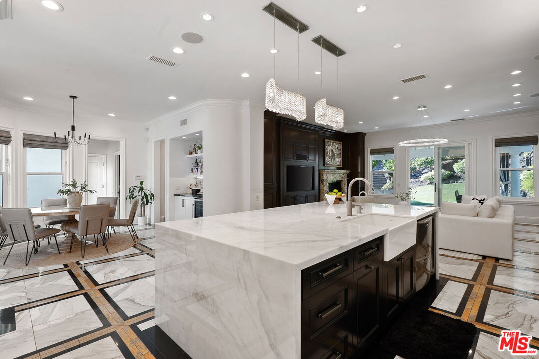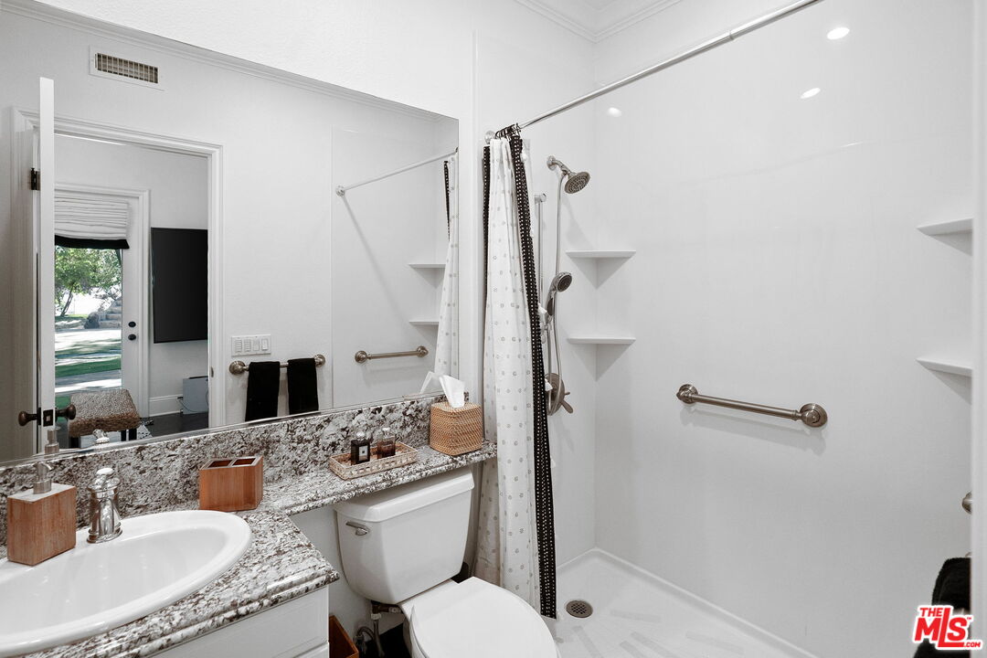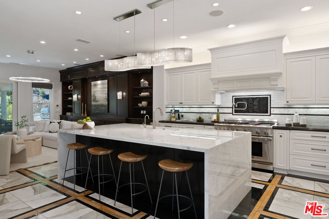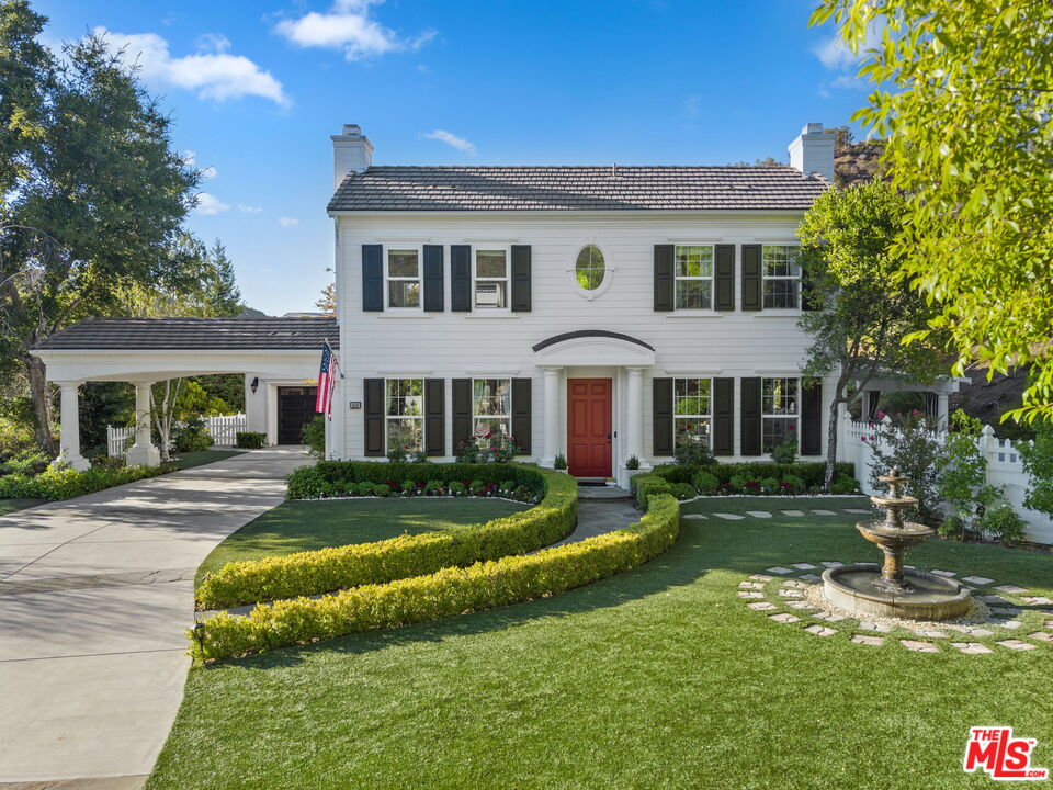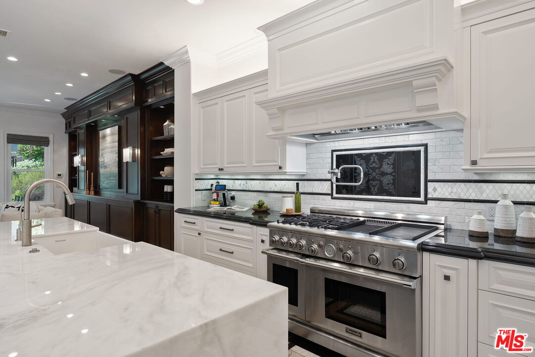 Welcome to a truly one-of-a-kind entertainer's paradise, ideally located in the heart of Westlake Village, one of Southern California's most coveted communities, celebrated for its top-rated schools and relaxed, upscale lifestyle. Set within a prestigious guard-gated neighborhood, this exceptional residence masterfully blends luxury, comfort, and show-stopping amenities throughout. At the heart of the home is a designer-remodeled kitchen featuring a breathtaking 13-foot Brazilian white marble island crafted from a single slab, paired with high-end appliances, including a Viking range with griddle and indoor grill, and a Halo 5 full-house water filtration system. The elegant interior also boasts a formal dining room with a fireplace, a fully enclosed office, an expansive primary suite with a peaceful seating area, a designer remodeled primary bathroom, a massive walk-in closet, and captivating views. Each bedroom is en suite and thoughtfully appointed with custom-built closets and dressers, offering refined style and everyday functionality. Step outside to your own private resort, where a large pool with a 40-foot waterslide, swim-up cave, and oversized jacuzzi takes center stage. Incredible canyon and hillside views can be seen from many vantage points of the expansive backyard. The outdoor amenities continue with three distinctive covered patios, a sports court, a wood-burning outdoor fireplace, and a side yard play area with artificial turf. The main backyard living space is an entertainer's dreamfully equipped with a TV, prep islands, sleek cabinetry, and a built-in barbecue and bar, ideal for gatherings of any size. A peaceful enclosed courtyard with a fire pit adds an intimate touch, while your very own Cabernet vineyard produces up to 400 bottles annually, creating a rare and luxurious lifestyle experience. Additional highlights include paid-off solar panels, a Tesla charger, a steam shower in the primary suite, low-maintenance artificial turf landscaping, a laundry room with a brand-new front-loading washer and dryer, and a climate-controlled wine cabinet capable of storing over 400 bottles. This extraordinary estate is the ultimate expression of luxury living in Westlake Village and must be seen to be fully appreciated. Don't miss your chance to tour this one-of-a-kind home before it's gone.