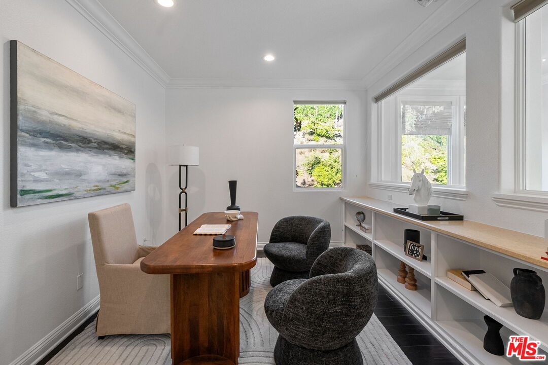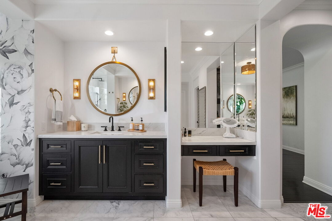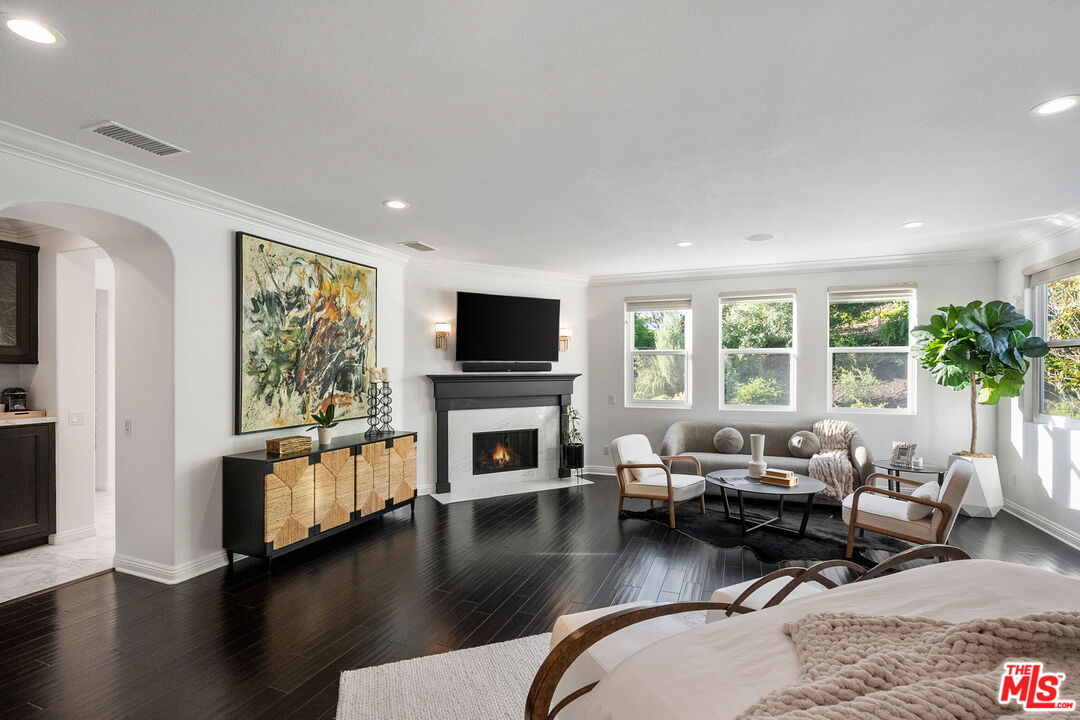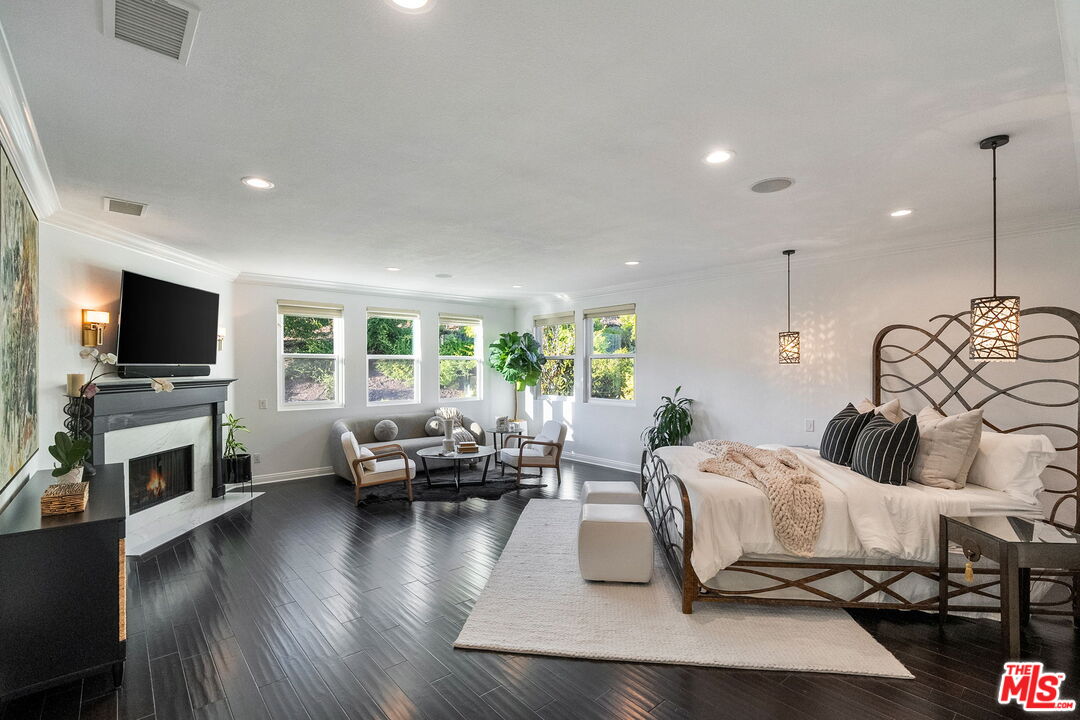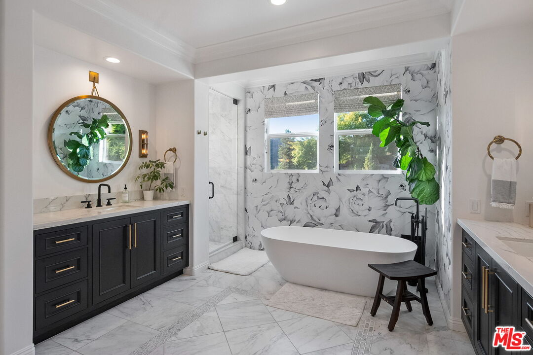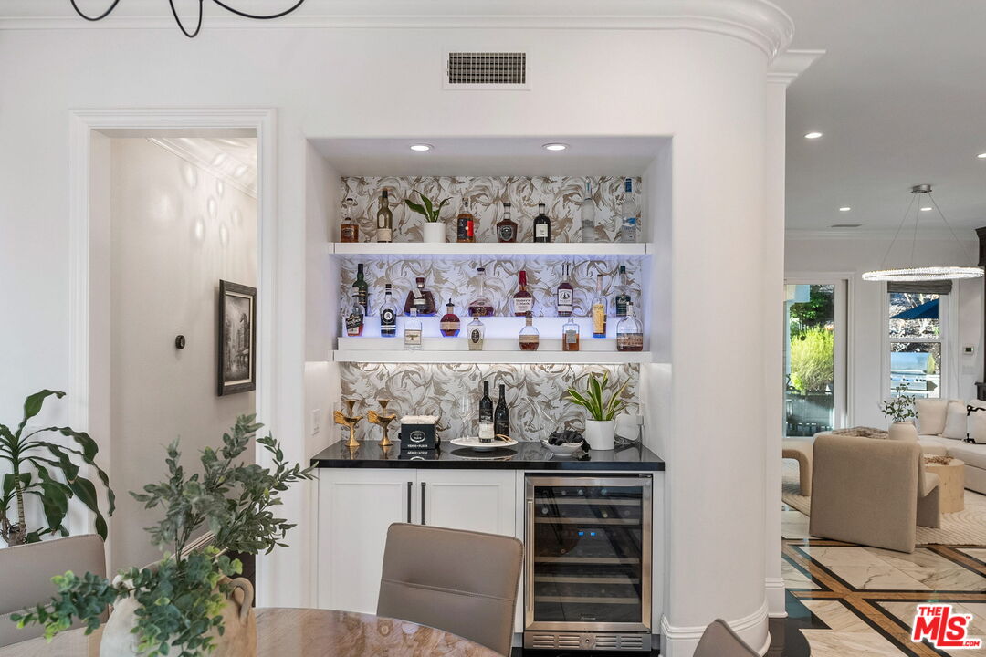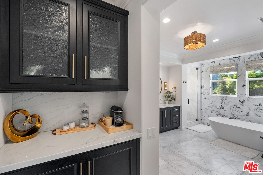 Welcome to a truly one-of-a-kind entertainer's paradise, ideally located in the heart of Westlake Village, one of Southern California's most coveted communities, celebrated for its top-rated schools and relaxed, upscale lifestyle. Set within a prestigious guard-gated neighborhood, this exceptional residence masterfully blends luxury, comfort, and show-stopping amenities throughout. At the heart of the home is a designer-remodeled kitchen featuring a breathtaking 13-foot Brazilian white marble island crafted from a single slab, paired with high-end appliances, including a Viking range with griddle and indoor grill, and a Halo 5 full-house water filtration system. The elegant interior also boasts a formal dining room with a fireplace, a fully enclosed office, an expansive primary suite with a peaceful seating area, a designer remodeled primary bathroom, a massive walk-in closet, and captivating views. Each bedroom is en suite and thoughtfully appointed with custom-built closets and dressers, offering refined style and everyday functionality. Step outside to your own private resort, where a large pool with a 40-foot waterslide, swim-up cave, and oversized jacuzzi takes center stage. Incredible canyon and hillside views can be seen from many vantage points of the expansive backyard. The outdoor amenities continue with three distinctive covered patios, a sports court, a wood-burning outdoor fireplace, and a side yard play area with artificial turf. The main backyard living space is an entertainer's dreamfully equipped with a TV, prep islands, sleek cabinetry, and a built-in barbecue and bar, ideal for gatherings of any size. A peaceful enclosed courtyard with a fire pit adds an intimate touch, while your very own Cabernet vineyard produces up to 400 bottles annually, creating a rare and luxurious lifestyle experience. Additional highlights include paid-off solar panels, a Tesla charger, a steam shower in the primary suite, low-maintenance artificial turf landscaping, a laundry room with a brand-new front-loading washer and dryer, and a climate-controlled wine cabinet capable of storing over 400 bottles. This extraordinary estate is the ultimate expression of luxury living in Westlake Village and must be seen to be fully appreciated. Don't miss your chance to tour this one-of-a-kind home before it's gone.