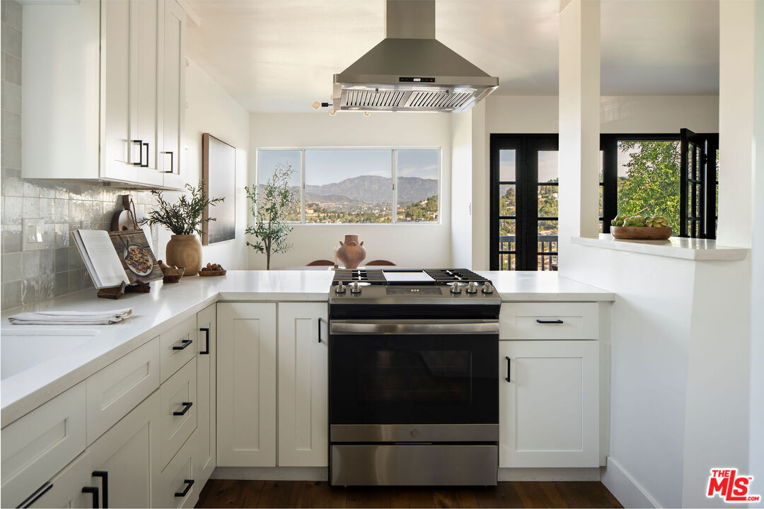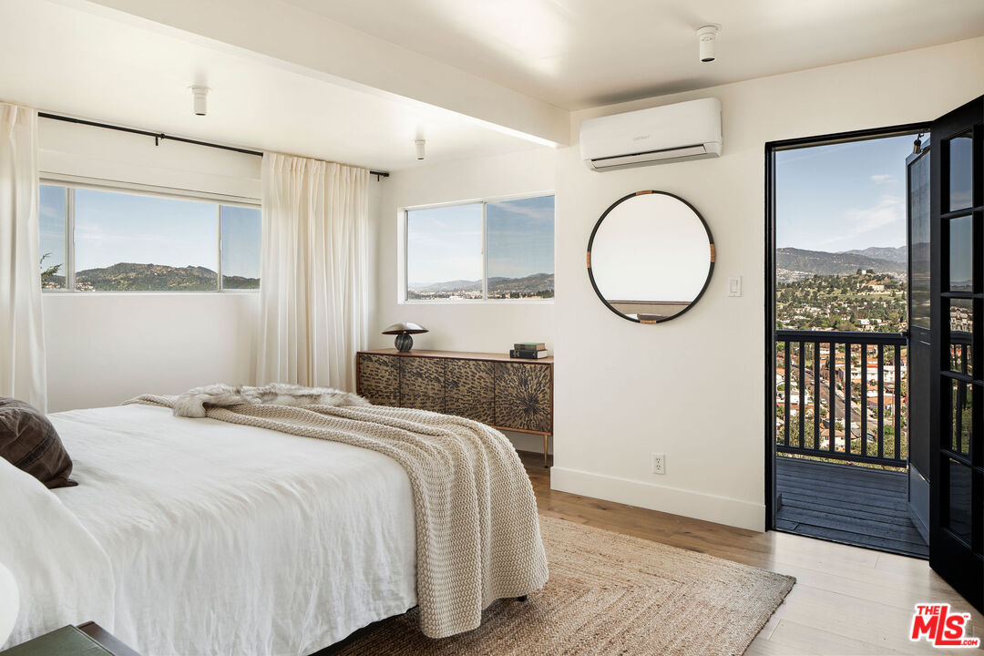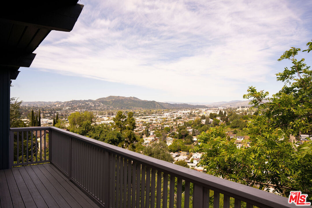 Perched in the hills of Mount Washington, this stunning view home blends classic mid-century modern character with thoughtfully updated interiors. Designed to capture the beauty of its surroundings, the home features expansive views and an open living and dining area that frame the Los Angeles skyline. The remodeled kitchen offers style and function, seamlessly connecting to the main living spaces. Beautiful custom built-ins add warmth and architectural interest throughout the home. Upstairs, the primary suite feels like a private retreat, with a balcony showcasing its own incredible views. Two additional bedrooms provide flexibility for family, guests, or a home office. The upstairs bathroom has been beautifully remodeled with terrazzo floors, a sculptural tub, and plenty of storage. Two private decks invite you to step outside and soak in the remarkable scenery perfect for morning coffee or sunset gatherings. This Mount Washington residence offers a rare opportunity to experience elevated hillside living in one of Los Angeles' most coveted neighborhoods.